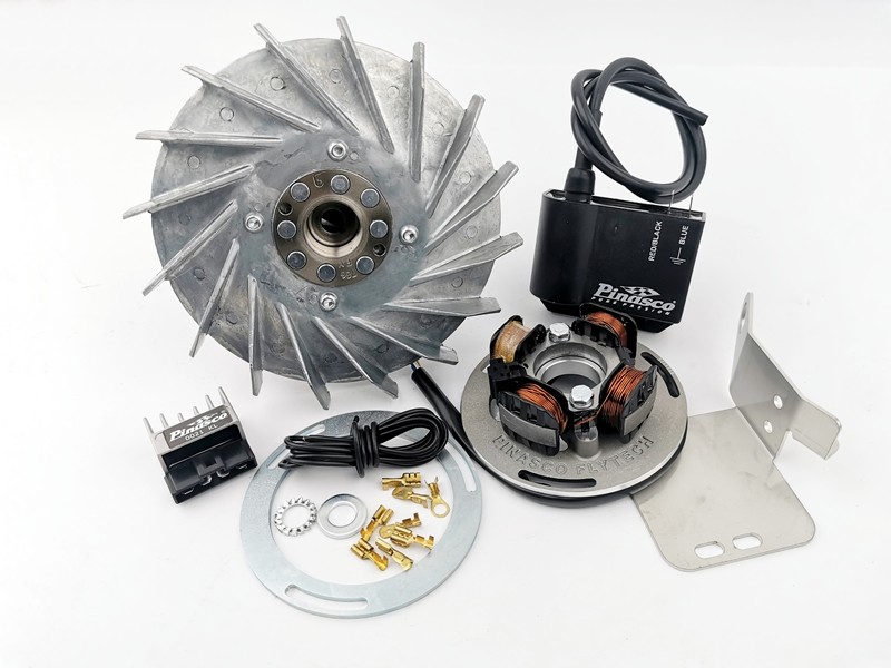 L'accensione Flytech Touring è caratterizzata da una ventola in fusione di Zama simile all'originale che mantiene inalterato il design della Vespa ed è equipaggiata di centralina ad alto voltaggio "Sparkey".