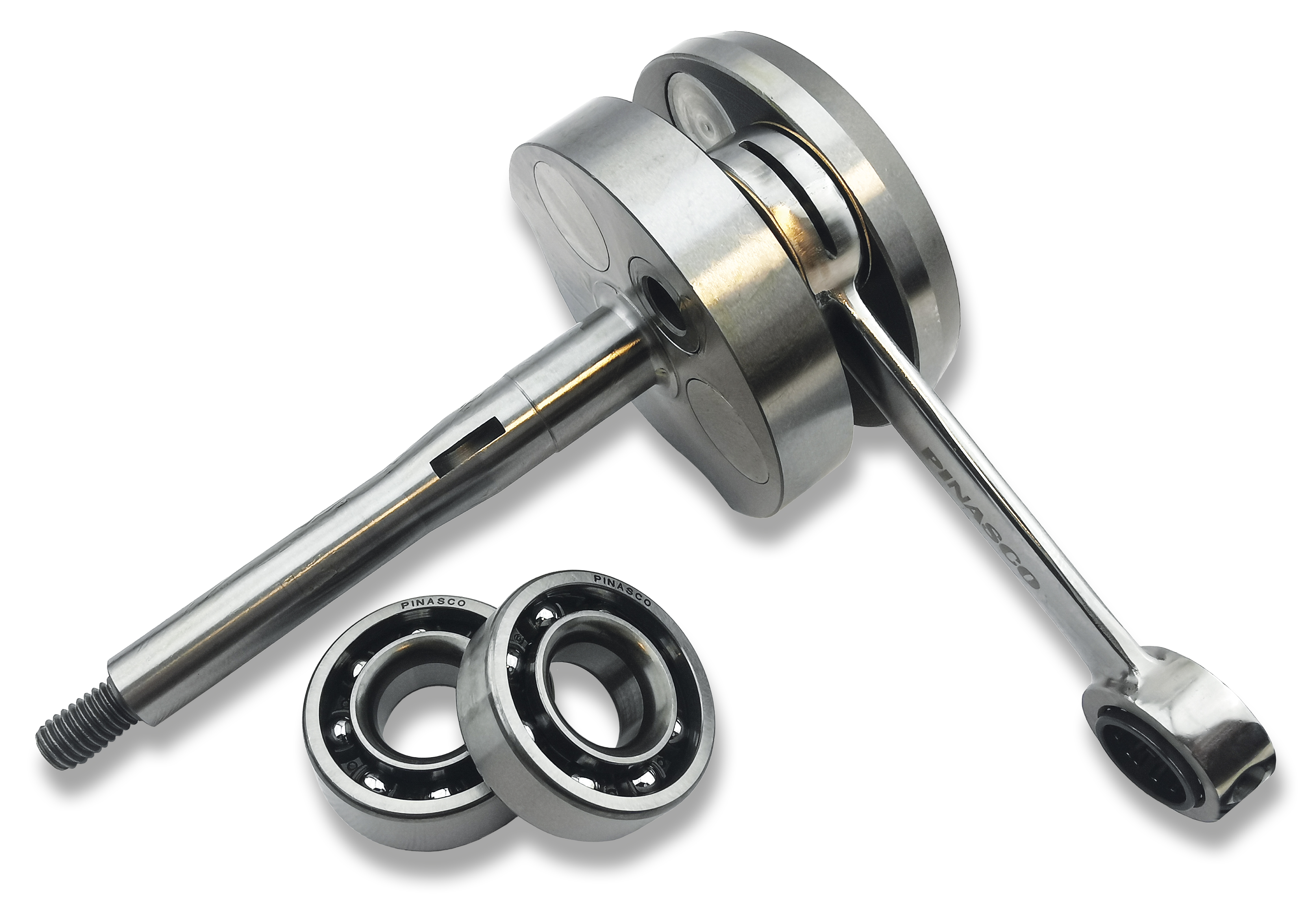 L'albero motore Pinasco, costruito in acciaio cementato e cromato, anticipato e lucidato nel lato ammissione, garantisce elevate prestazioni in ogni condizione di utilizzo, anche le più gravose.