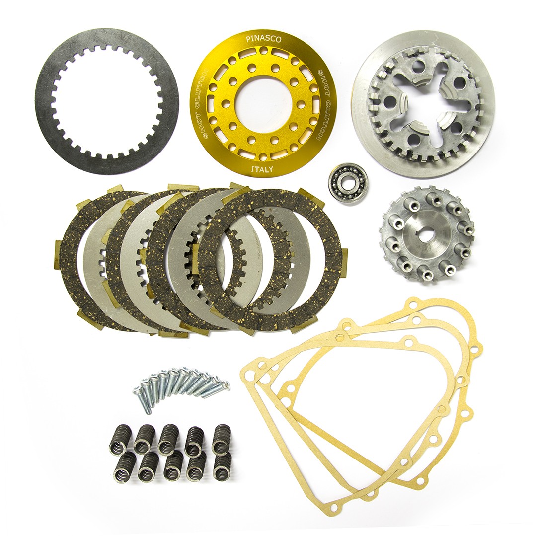 La frizione Pinasco "Shot Clutch" è consigliata oltre che per i motori ad alte prestazioni anche in sostituzione della frizione originale per l'utilizzo quotidiano.