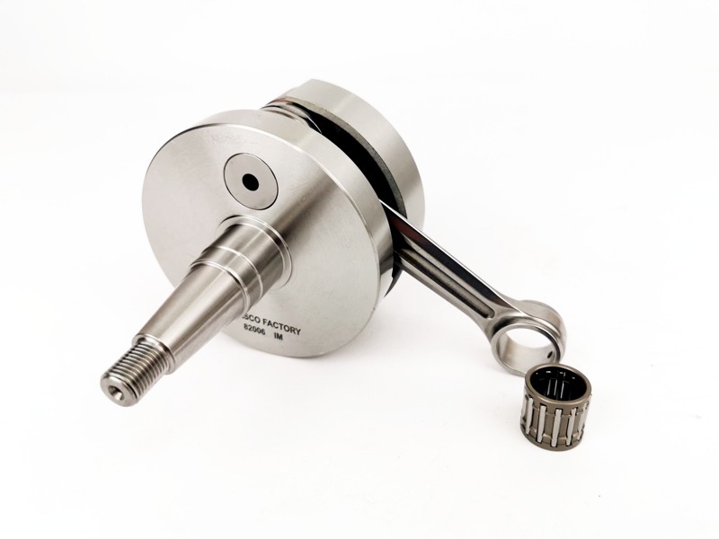 Vai al carrelloAlbero motore Factory corsa 57 mm, biella 110 mm, specifico per carter Slave Pinasco e carter Piaggio con inserti in tungsteno e calettatura specifica per frizione Bull Clutch Pinasco.