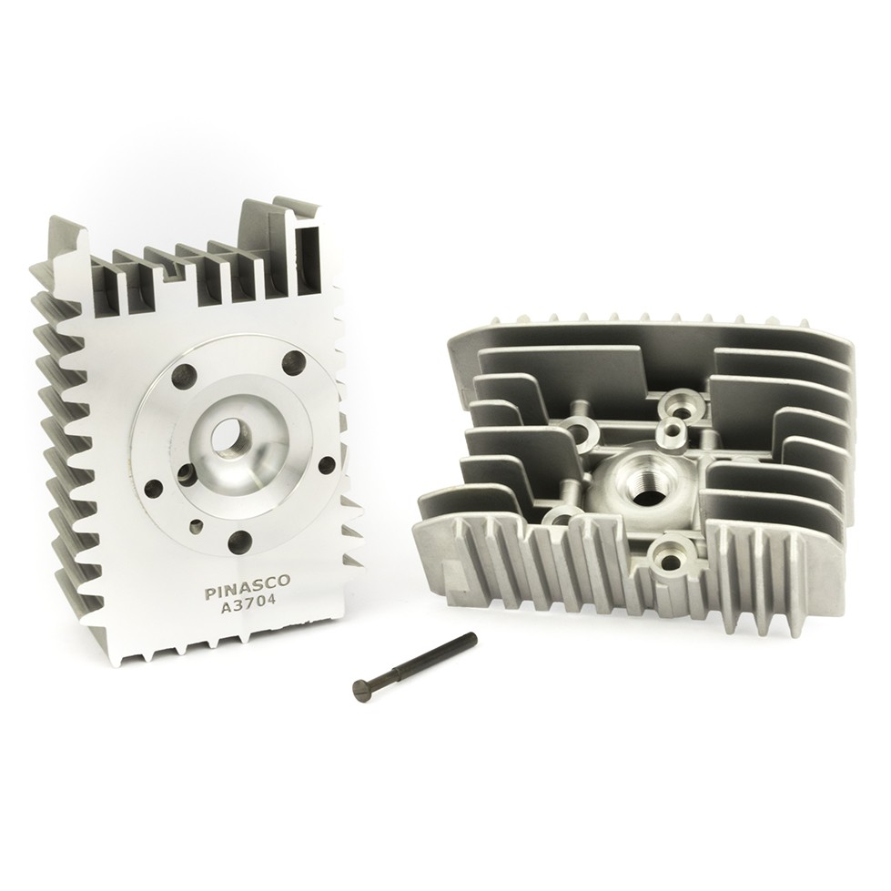 Testa di ricambio a candela centrale per gruppi termici pinasco realizzati per ciclomotori Piaggio. Può essere impiegata su motori a 3 o a 5 prigionieri.