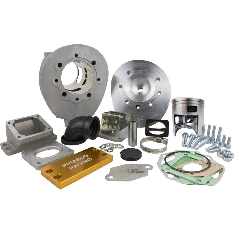 Vai al carrelloIl gruppo termico 225cc in alluminio 9 travasi è specifico per il montaggio con alberi motore corsa lunga 60mm. I cilindri sono realizzati in lega di alluminio con riporto al Nicasil che conferisce una robustezza eccezionale ed una resistenza unica garantendo prestazioni superiori a tutti i regimi di utilizzo. Questo gruppo termico è l'ideale per chi vuole un motore in corsa lunga ad alte prestazioni, il cilindro è completo di pacco lamellare tipo RD350 per poterlo usare "aspirato al cilindro"