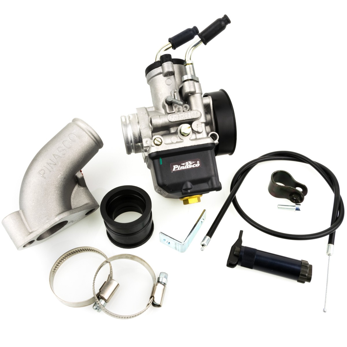 Impianto alimentazioni con carburatori da 28 e 30 mm, adatti a tutti gli scooter elaborati. Vengono forniti con tutti gli accessori per il montaggio e gitarati per ogni Vespa.