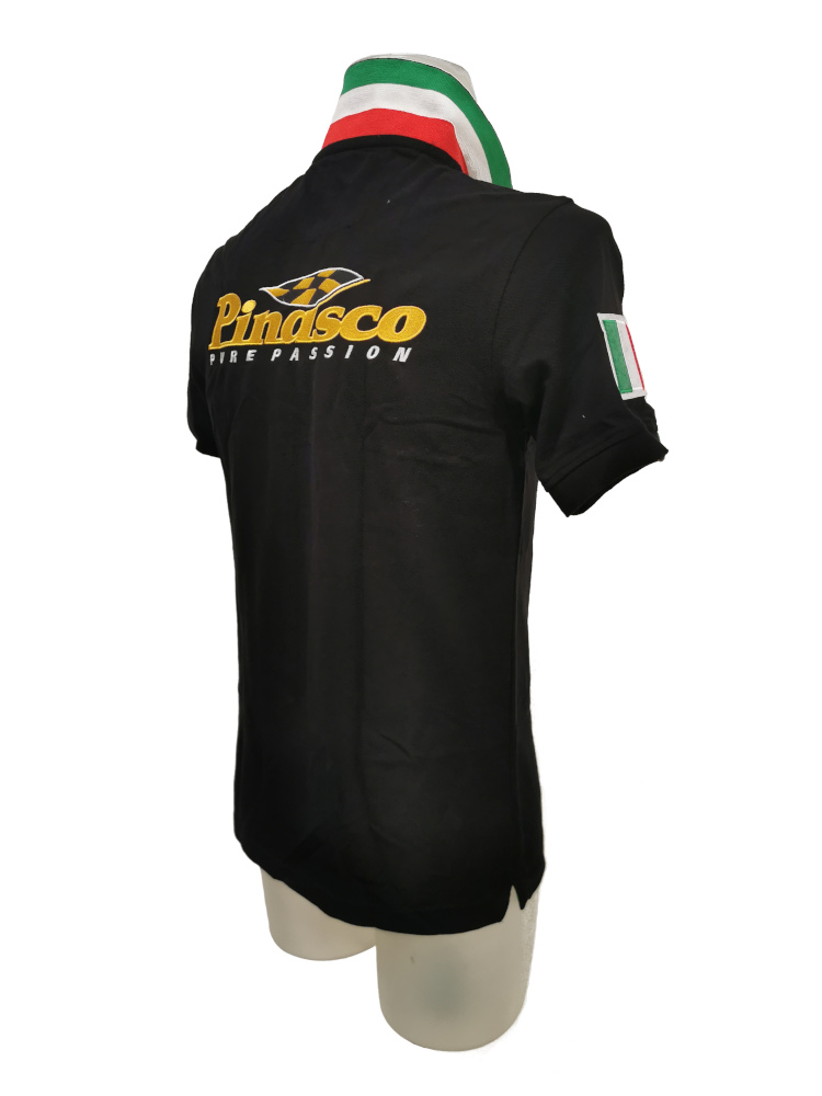 T-Shirt, maglietta ufficiale della "Scuderia Pinasco" con logo ricamato, in cotone di altissima qualità, Colletto con bandiaera italiana, ricamata fronte e retro con logo a spessore, bandiaera italiana su manica destra.