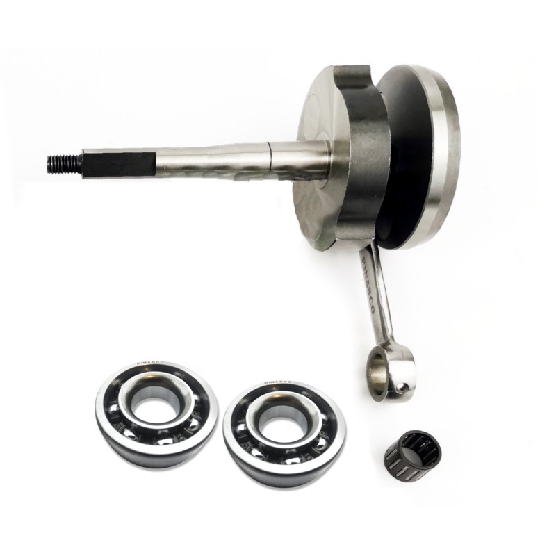 L'albero motore Pinasco, costruito in acciaio cementato e cromato, anticipato e lucidato nel lato ammissione, garantisce elevate prestazioni in ogni condizione di utilizzo, anche le più gravose.