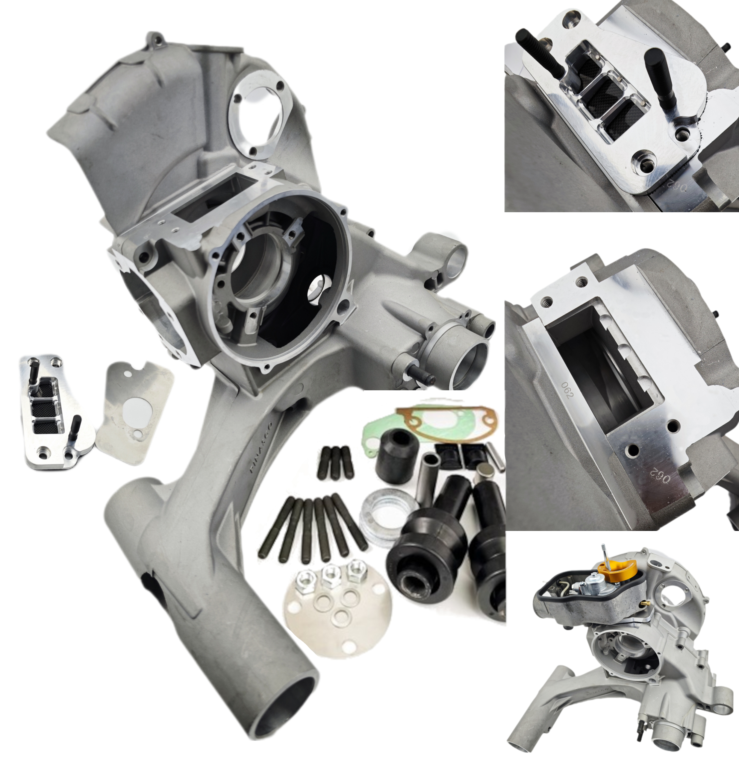 Vai al carrelloPinasco ha sviluppato un nuovo carter motore per Vespa 200 con aspirazione lamellare, progettato per consentire il montaggio del classico carburatore Vespa SI fino a 28mm.