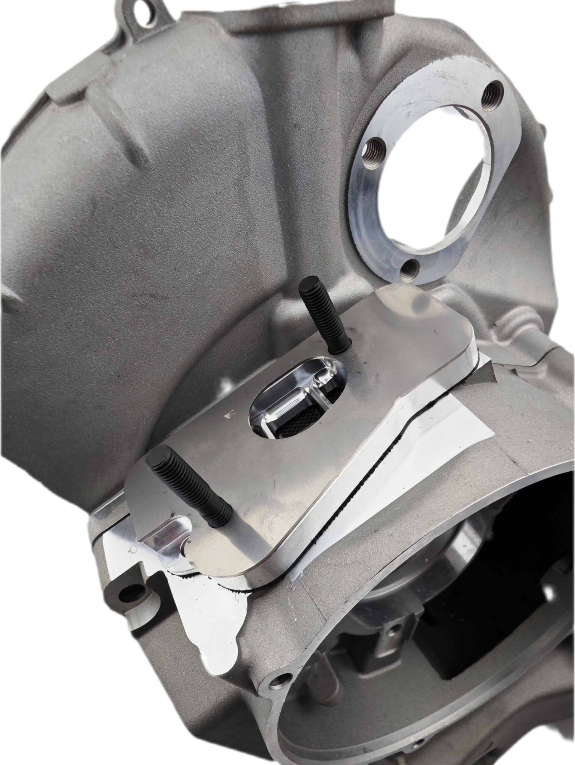 La nuova sede cuscinetto è stata ulteriormente rinforzata con l'aggiunta di 3 nuove nervature che garantiscono il sostegno e la tenuta di tutto il banco motore, 2 nervature di rinforzo sono state aggiunte sull'asse del cluster.